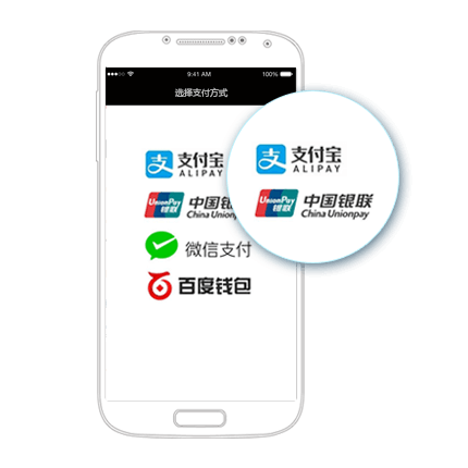 七月支付平台,为iOS/Android原生/H5 App提供支付解决方案:支持微信支付、支付宝支付、银联手机支付、百度钱包等。